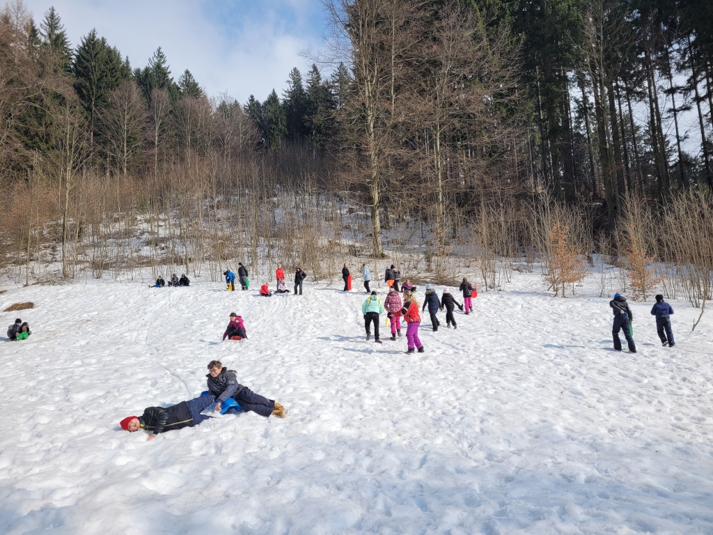 Ekologický program místních lektorů doplnili naši pedagogové sportovními a jinými týmovými aktivitami. Každé ráno jsme absolvovali rozcvičku, většina z nás dokonce ranní výběhy do okolí, odpoledne jsme se vyřádili na sněhu a večery jsme trávili při kytaře, navlékáním korálků, hraním her uvnitř, ale i v lese při nočním hledání pokladu. Překonali jsme sami sebe, když jsme se na celodenním výšlapu brodili sněhem po kolena.